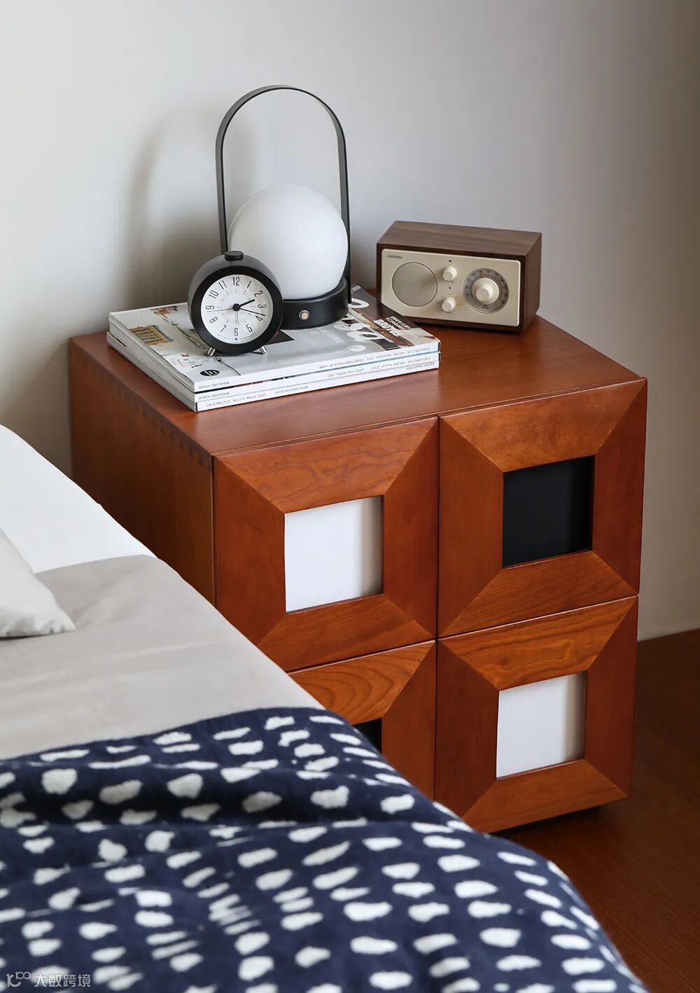 依旧是丹麦知名建筑师Arne Vodder的设计灵感:一只可爱的拼色小抽屉柜,单只可以当床头柜。