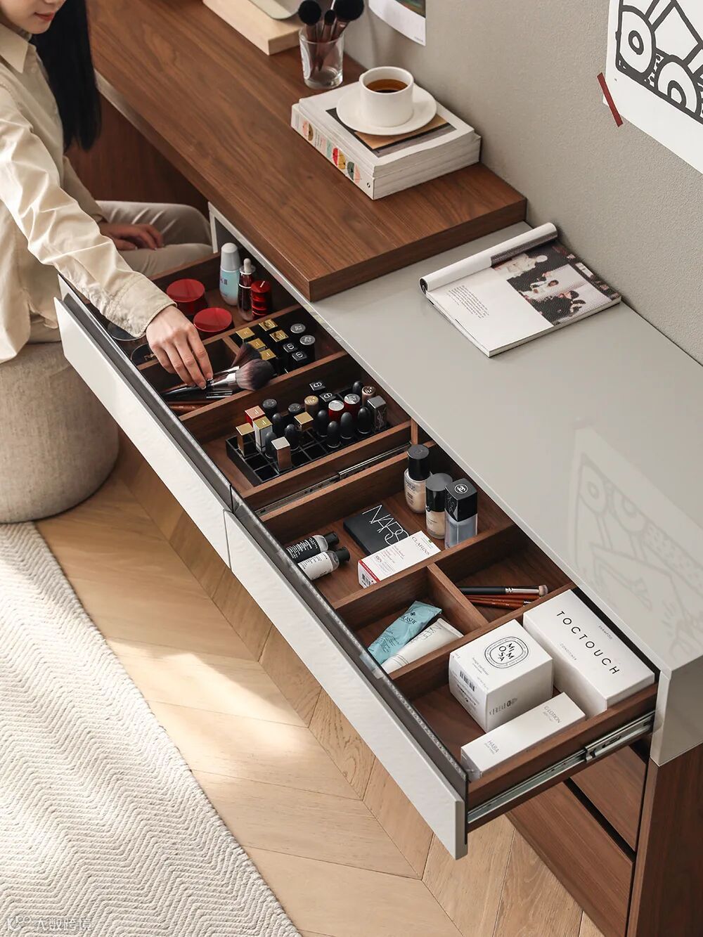 什么,抽屉变浅,柜子居然更好用了?口红眼影化妆品,手账胶带水彩笔,浅抽屉确实能让零碎的小物件更容易拿取。
