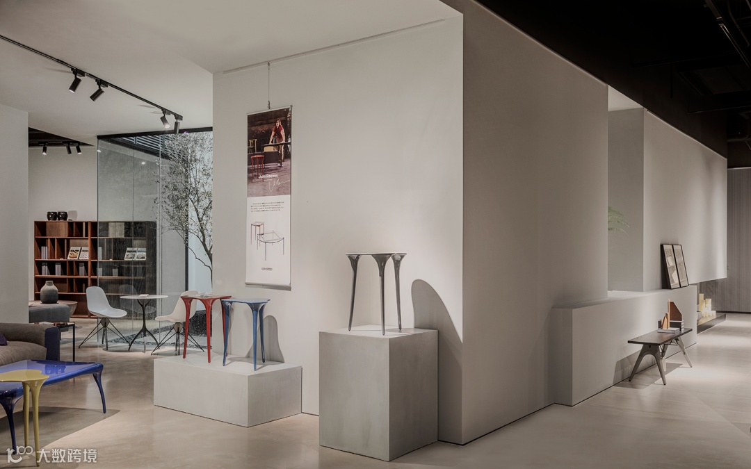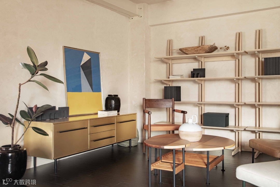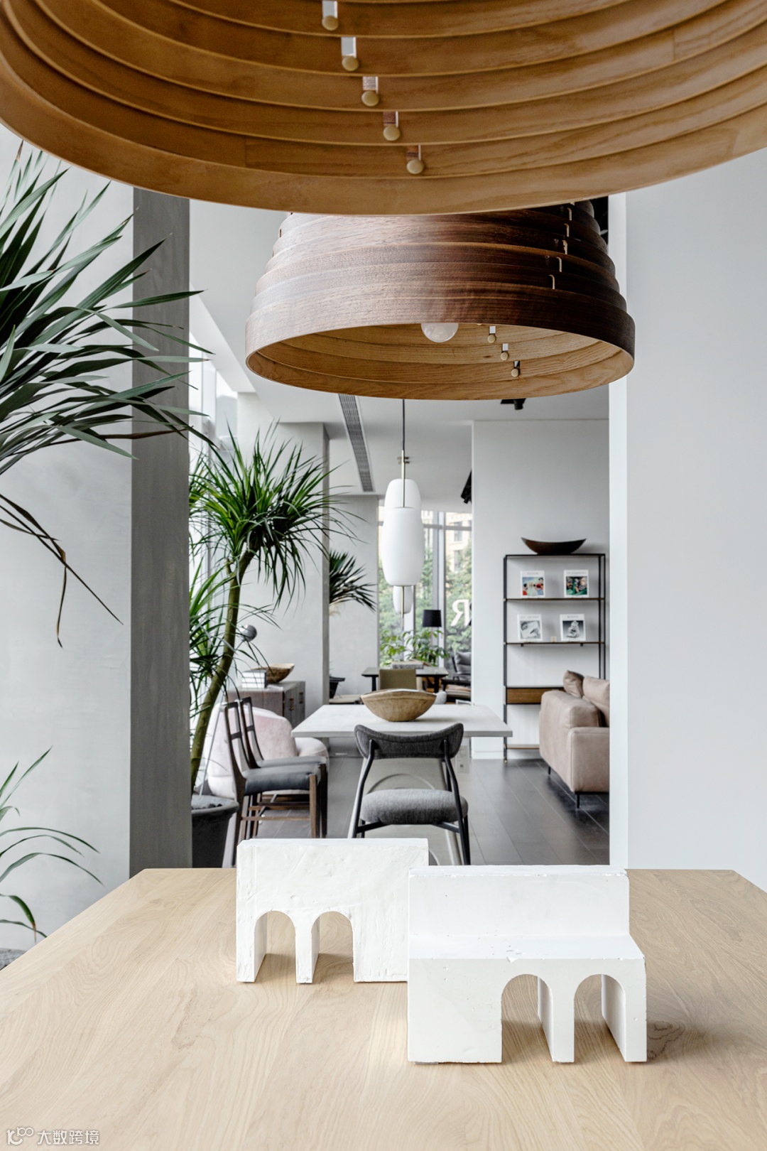 在地性消解了隆重的陈列感,走入楼中,仿佛已在此处生活许久。前厅、中庭,由强渐弱的冷暖对比衬托出不同的生活场景,展厅连贯却相异的空间色彩通过人们熟悉的材料本身展现……人透过色彩,看到与自身性格相近的家居,这份启迪与宁静,是由这座缄默的老楼带来的。人、空间、家居的古老连结借由这次展厅设计的契机再次传达出来。合记堆店的集体记忆,成为NORHOR表达品牌观念——“一切从家开始”的绝佳语境。