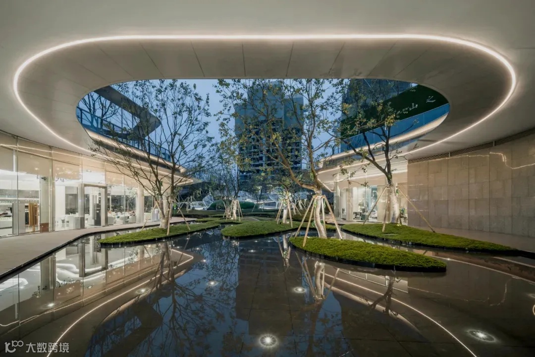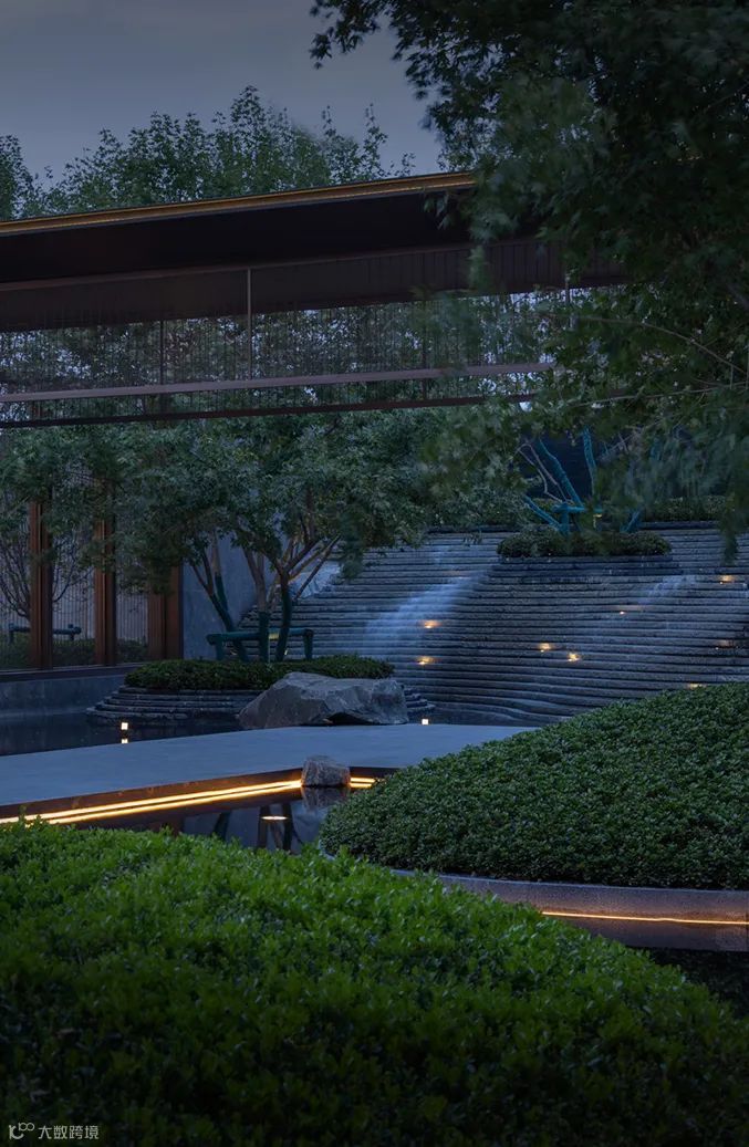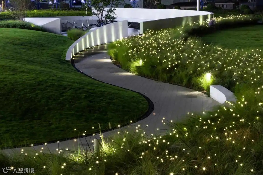 灯带,可以隐藏的形式弱化自身存在感,沿着相应的空间轮廓渐次排布开来,凹出独特的几何或曲线造型。既能够不显得突兀杂乱,也能在夜晚时分绽放光彩,赋予景观的第二套属性。