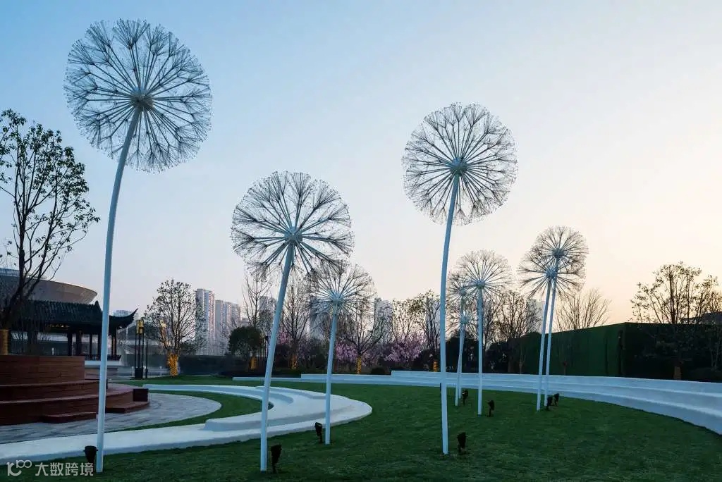 绿地香港•天空树蒲公英草原,展现出一派 “喧鸟覆春洲,杂英满芳甸 ”的生机景象。精致的蒲公英装置艺术跃然眼前,在这里,孩童们嬉戏成长,大人们休憩阅读,整个场地焕发着新的生命力。