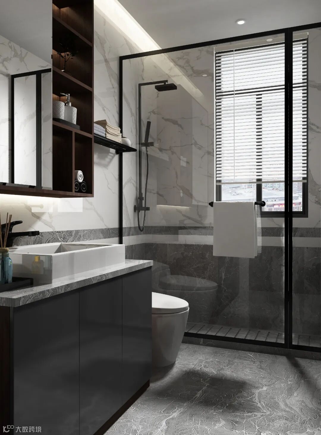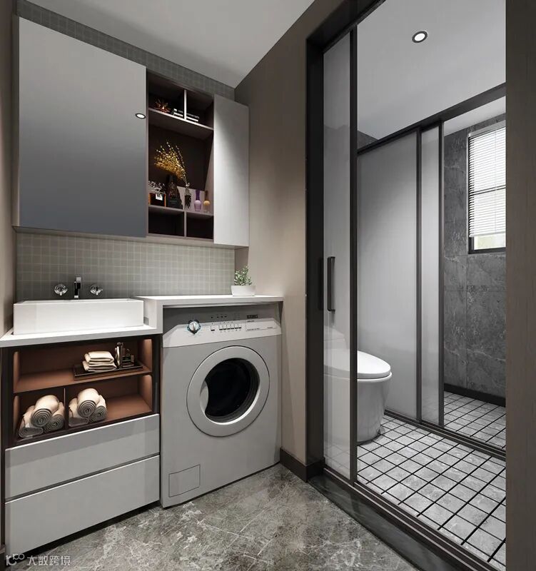 2. 使空间感增大。挂墙式的浴室柜可以使小户型的卫生间没有拥挤感;