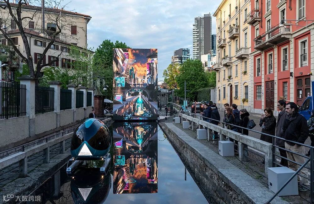 在水槽尽头有一个LED屏幕,连接着今日与未来米兰