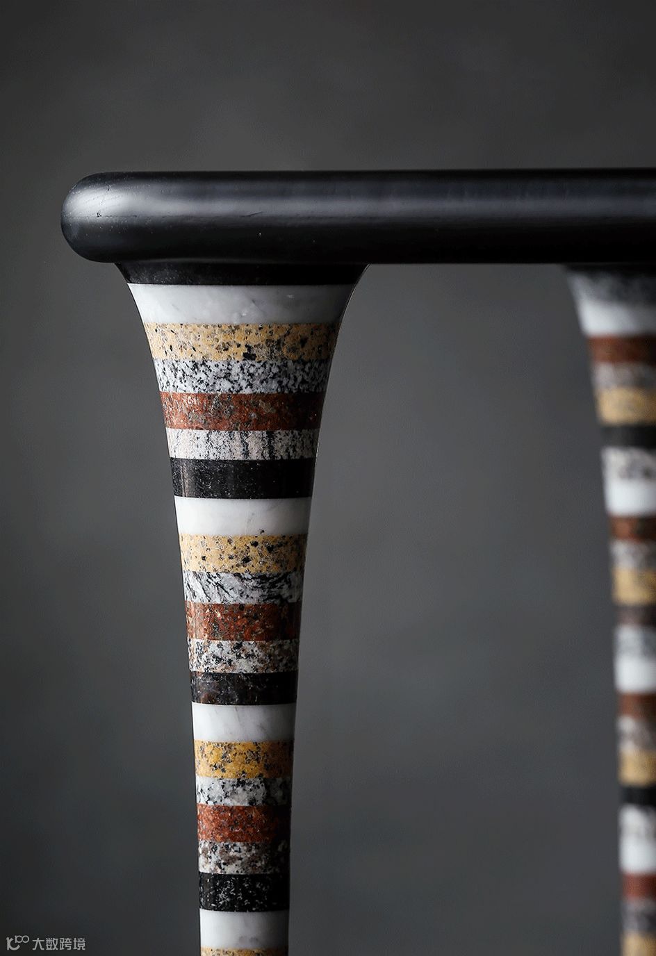 每件作品均由精心挑选的珍贵大理石块雕刻而成,譬如Arabescato Fantastico,一种罕见的白色大理石,带有深灰色石纹,开采期间尚未超过30年。Nero Marquina,黑色大理石,表面有着笔触般的乳白色脉络。
