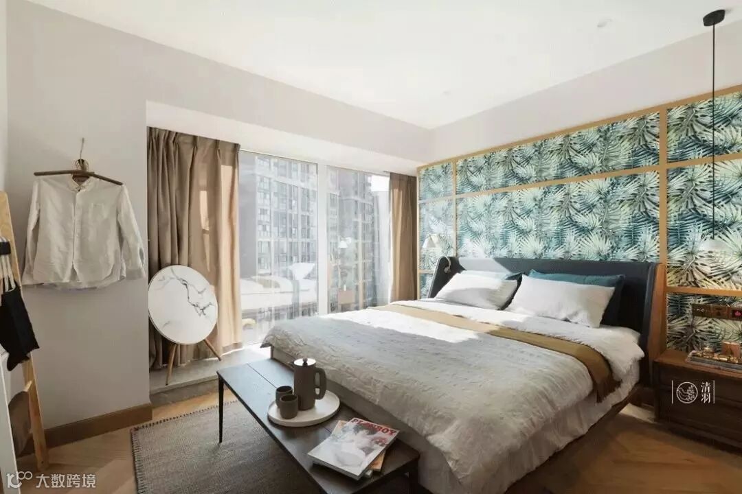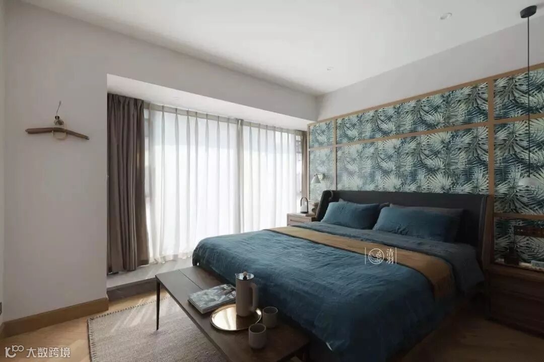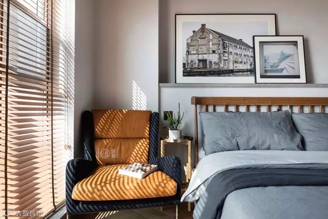 有着良好采光的次卧,阳光透过百叶窗,投下了惬意光影。哥本哈根双人床的床头立柱设计,在这样的整体搭配中,更明显呈现出了闲适放松的度假感。