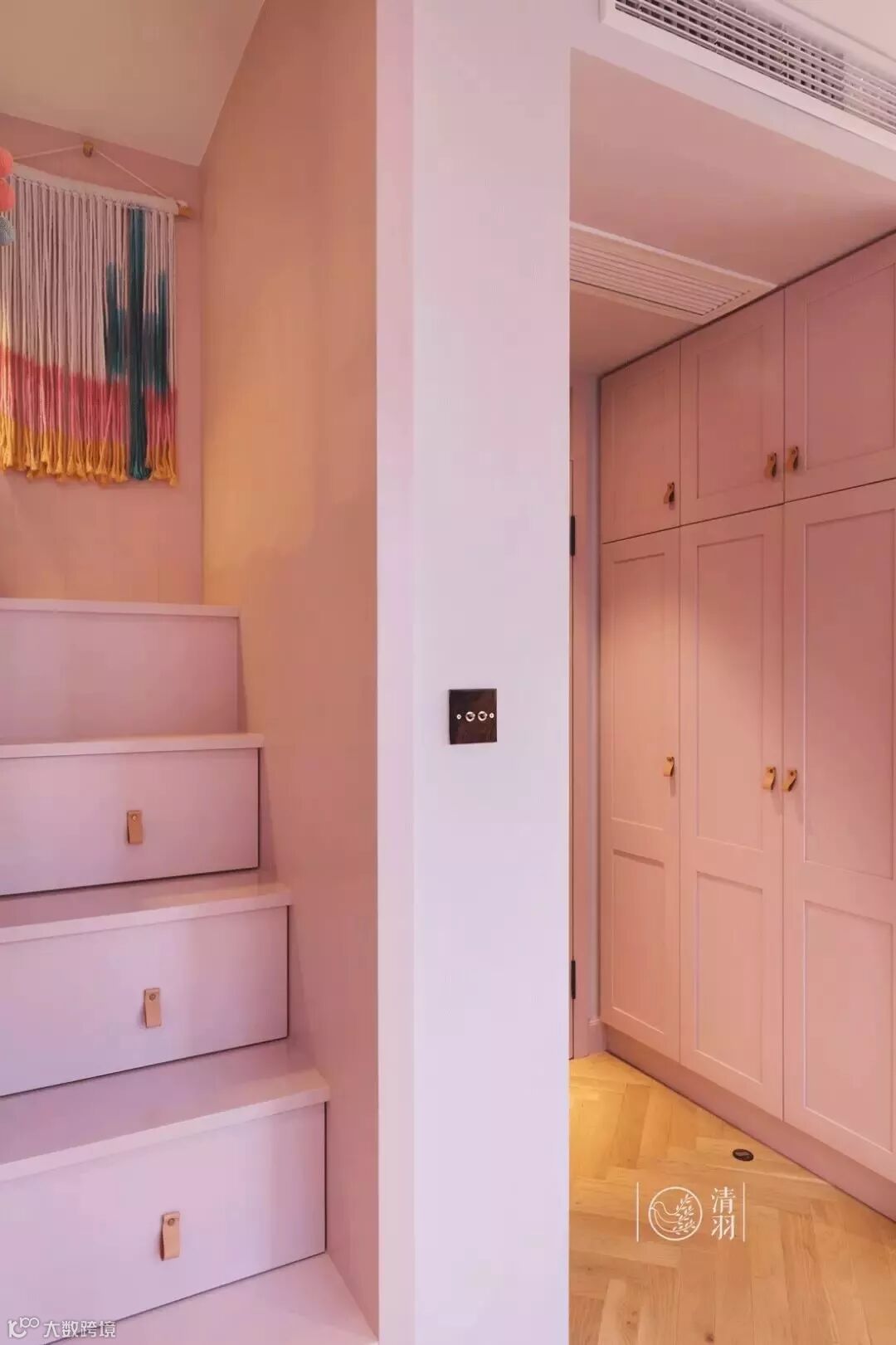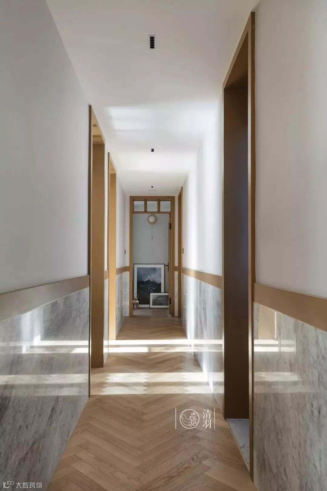 家中两个宝宝最喜欢在这儿跑来跑去。当早晨的阳光穿过房间洒在走廊上,美好的一天就这样开始。