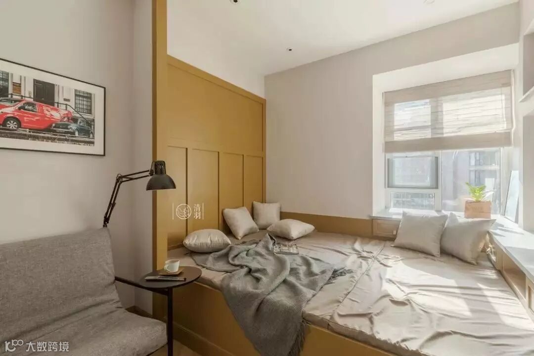 功能房是面积最小的卧室,设计师选择了具有超大储物容量的榻榻米,以充分利用空间。这里除了作为客房,平时也是两个宝宝玩耍的地方。