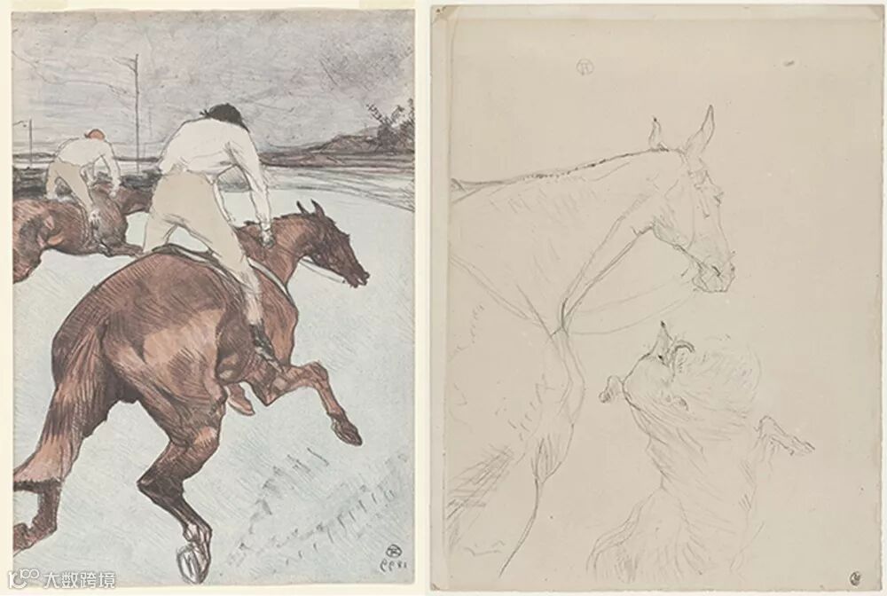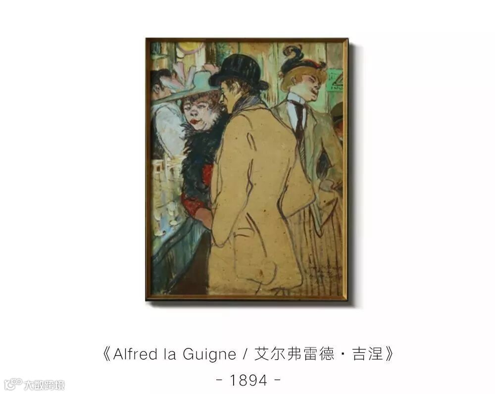 然而,德加笔下的人物就像是“从钥匙孔中窥见”,面容通常模糊不清。但罗特列克的人物,则有着清晰的五官。