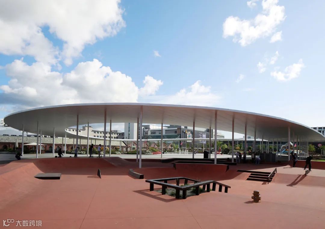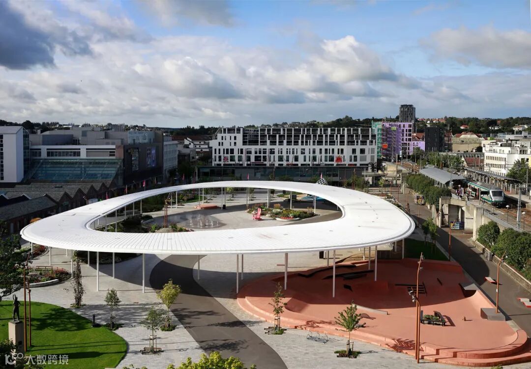 Ruten公园由SPACEGROUP设计,位于挪威,Ruten公园被夹在两种截然不同的环境之间,一面是高架的火车轨道,另一面是大型购物中心。过叠加这两个相邻的环境,Ruten公园同时适应了两种不同的尺度。参照旁边历史城区的结构,一个由树木、立柱和街灯构成的6x6m的网格得以在场地中延伸。