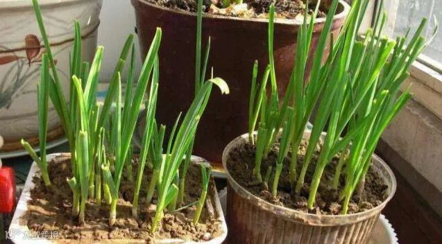 春天了,大家有没有发现家里面买的大蒜头很多都发芽了呢,不要扔,找一个花盆放点土,将蒜瓣一瓣一瓣掰下来,埋进土里,不久之后就有蒜苗可吃了。