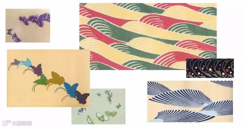 ▲ 以1902年远渡重洋的经历作为灵感,神坂雪佳绘制了一批海浪的抽象设计图案,并出版成《海路》一书发行。之后他又将日本琳派中传统意象蝴蝶作为元素,出版了《蝴蝶千重》图案设计书籍。图为其中的图案。 (via Google)