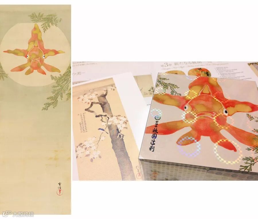 ▲ 神坂雪佳《金魚玉図》,采用了日本传统琳派的色彩与构图,却选择了一个与众不同的正面角度,是当代琳派的代表之作。目前被细见美术馆所收藏。(via Google)