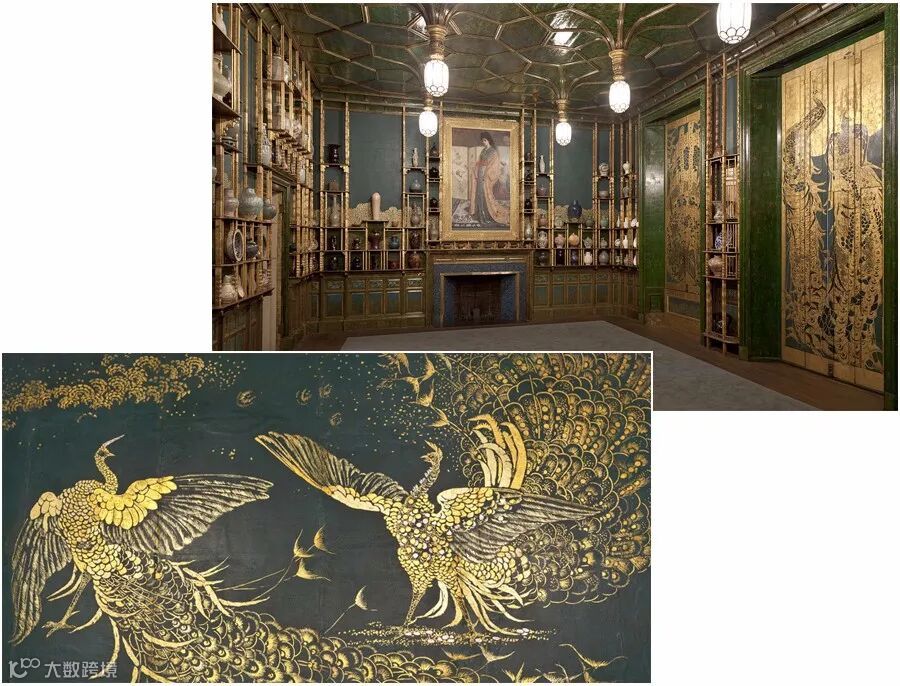 ▲ 美国著名印象派画家詹姆斯·惠斯勒的《孔雀屋餐厅》(Peacock Room),目前收藏于史密斯学会弗里尔美术馆。其中墙绘的孔雀帆布油画,是典型的日本琳派风格,表现了当时西方人眼中的东方风格。(via Google)