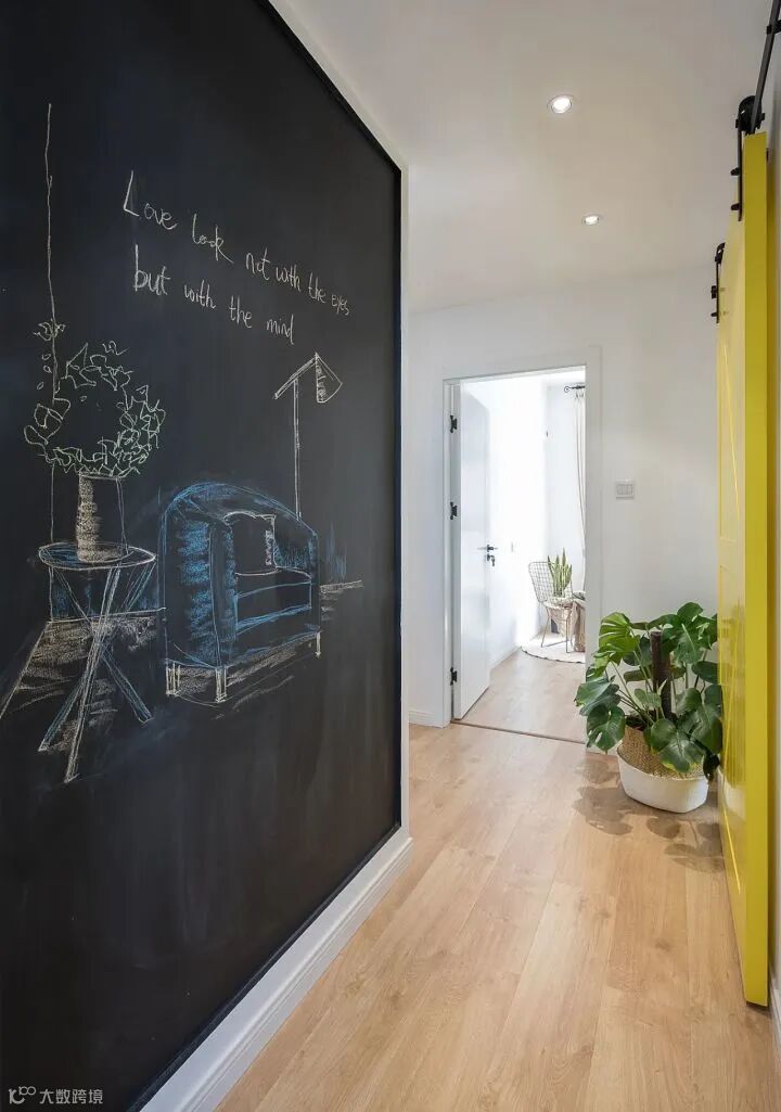 家里有孩子的,墙面都免不了被涂涂画画,在走廊处刷上黑板漆,给他们一个自由的涂鸦空间,尽情发挥他们的创造力!