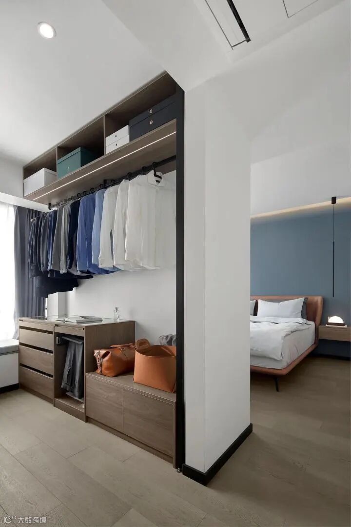 卧室进门有走廊的话,设计成衣帽间是个不错的选择。