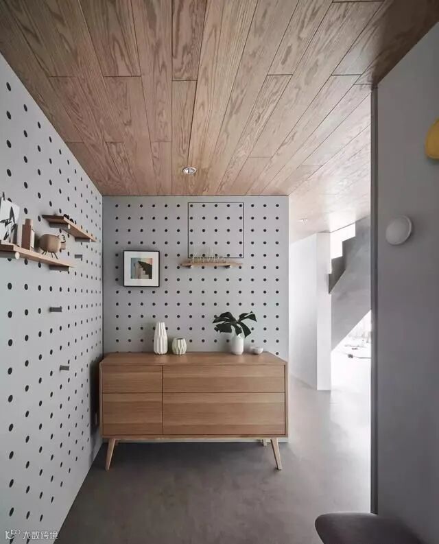 玄关处的廊道再狭窄一点的话,可以用洞洞板或简单的挂钩做收纳,节省空间,收纳能力也不小。