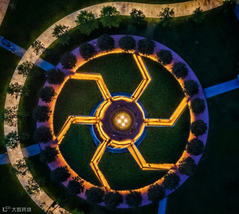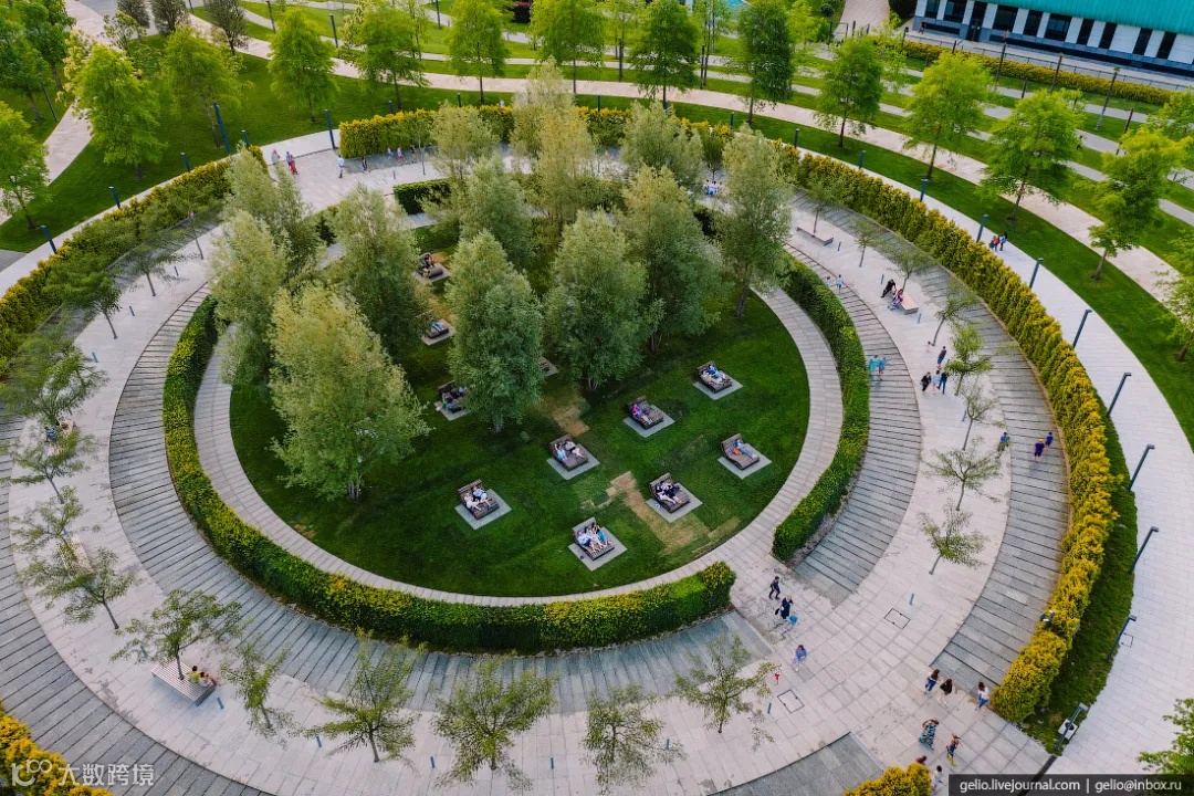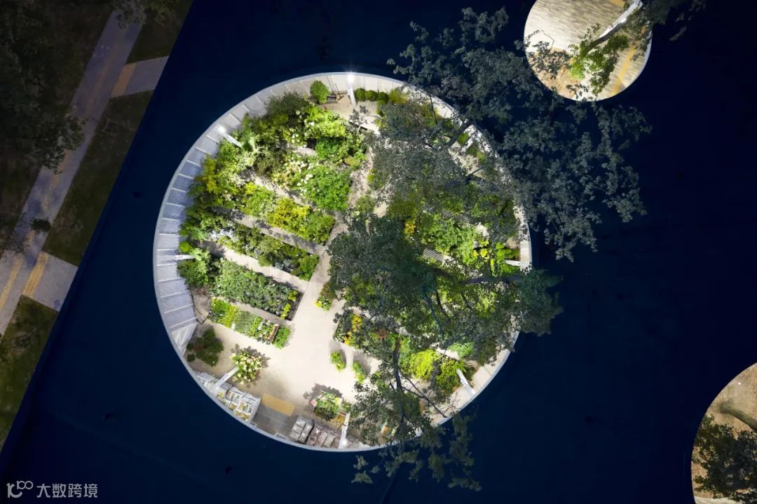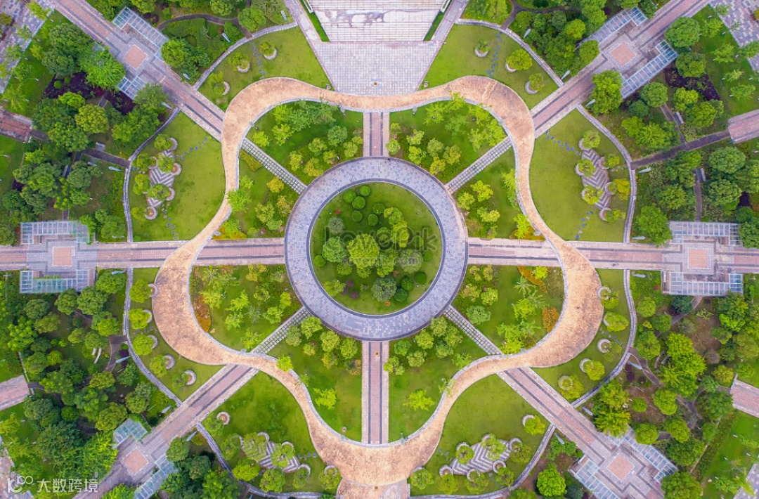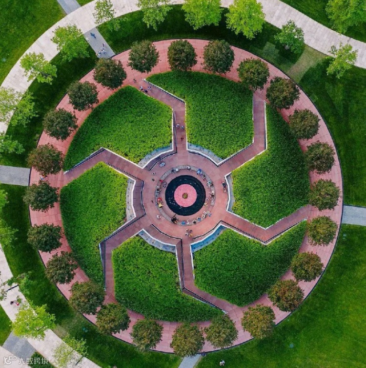 单独出现,用来定义路径或区域,如圆形的草坪或休息区,同时创造开放和包容的空间感。