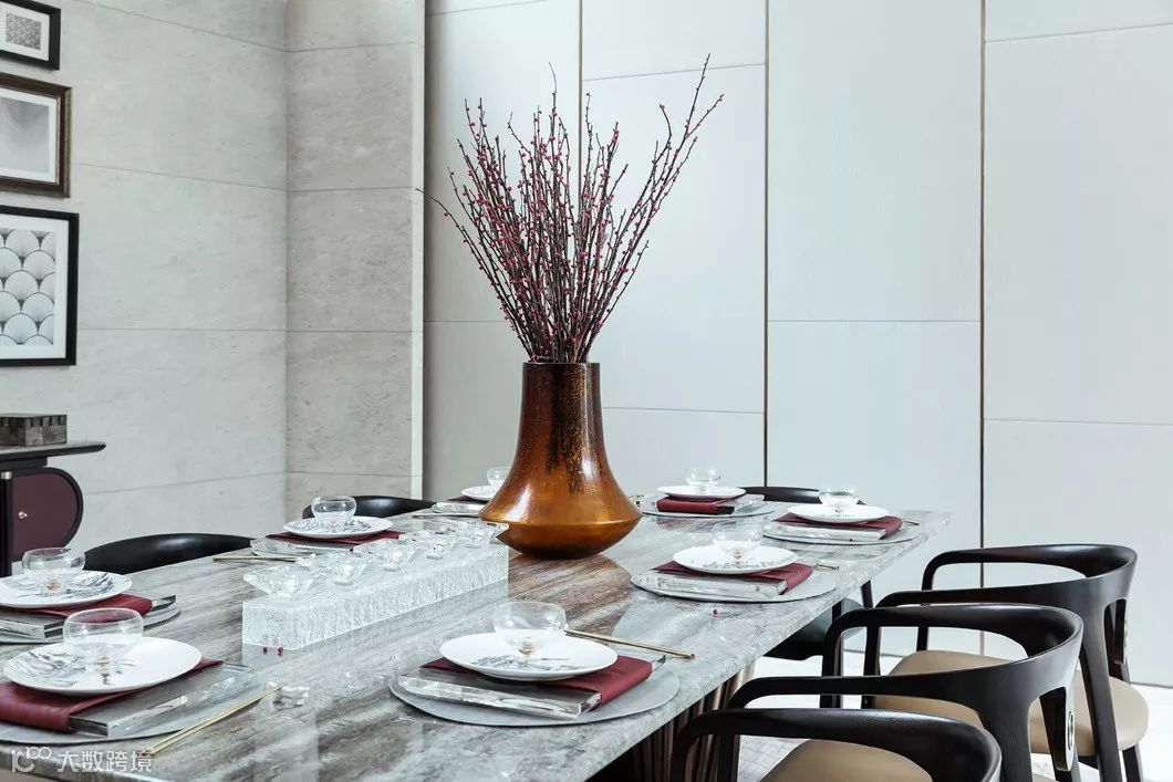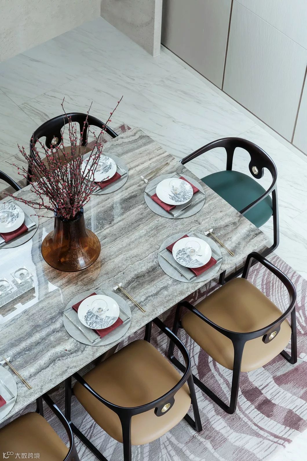 以新的形式传承古老物象的意境之美,于极简中展现中式设计的独特味道。视觉观感下的传统配饰,无一不在诉说着古老东方文化的设计之美,从而塑造出一种“稳重静谧”的对称美。