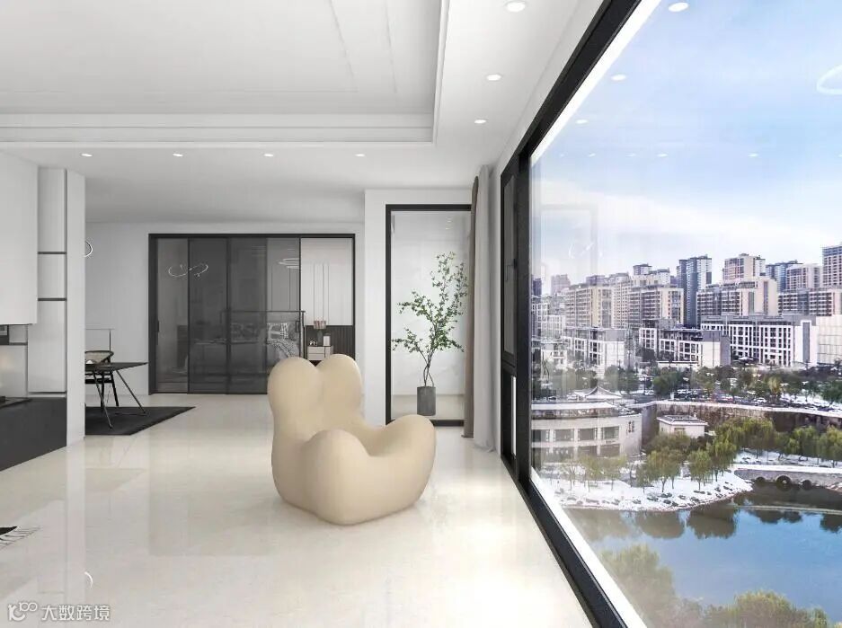 首先,我们不能否定大玻璃所带来的视觉感受,特别是在横厅户型当中,透过没铝合金窗框遮挡的玻璃看向户外,真的很美,让人陶醉!而且采光效果也很棒!