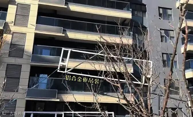 大玻璃的安装相当复杂,首先是铝合金框的安装,在厂家拼好整个框架后再运输到现场,尺寸要比大玻璃还大,因此需要从室外吊装。