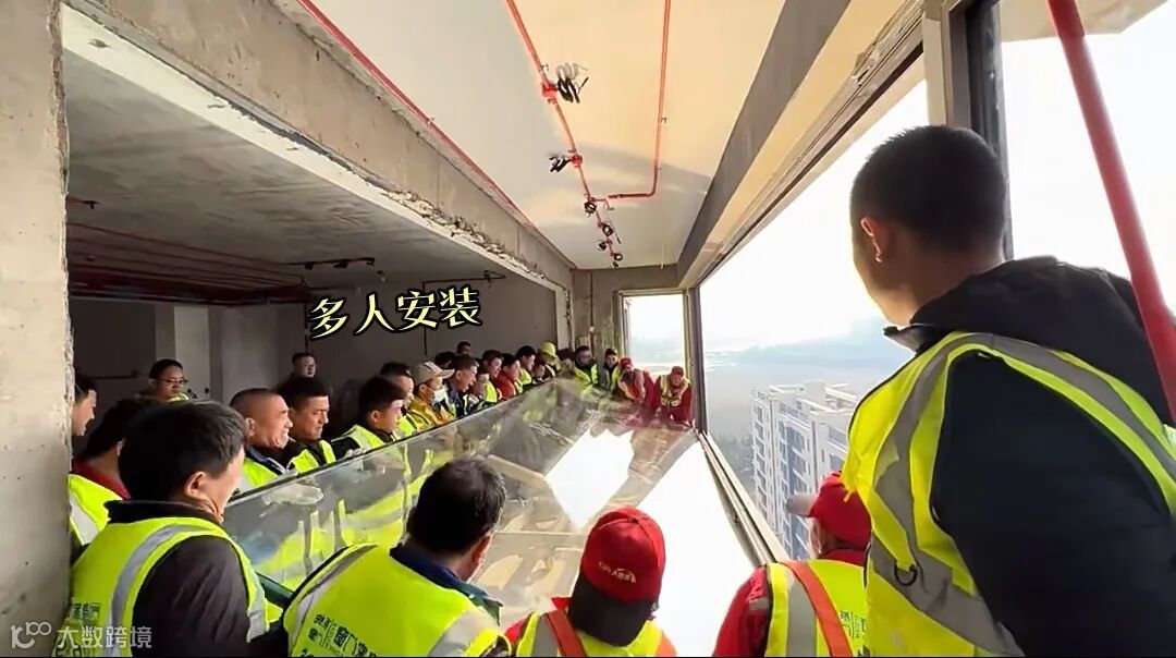如果在这过程中出现意外,导致大玻璃破碎,风险大损失也很大。