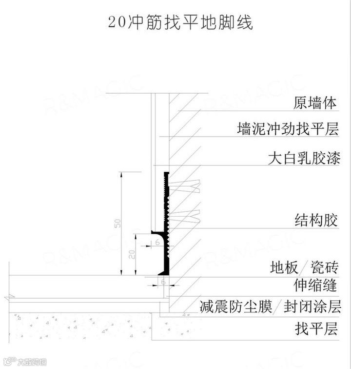 踢脚线是一种在室内装修中常见的设计元素,其主要特点在于突出表面,并具有翻沿部分,能够遮盖缝隙。在施工方面,踢脚线的设计和安装相对简单,容易操作,同时容错率较高。即使在施工过程中出现一些小错误,也不会对整体效果产生太大影响。此外,踢脚线的设计还考虑到了材料伸缩的问题,通过留有缝隙的方式为材料提供了自由伸缩的空间,避免了因温度和湿度变化所引起的材料变形和开裂等问题。