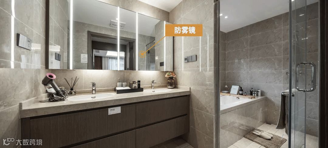 洗手间里面,爱照镜子的美眉会发现一个很牛的设计,防雾镜!