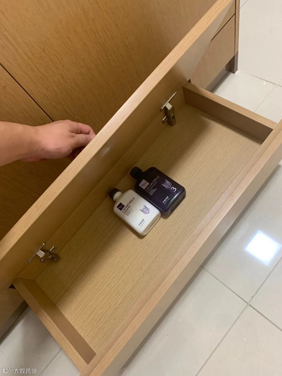 相比于平开门浴室柜不管收纳什么,每次拿取物品都要弯腰或者蹲下,拿取过程太麻烦,而抽屉式只需抽拉打开即可,一览无余,取用时不用蹲在地上略微弯腰即可,使用起来非常方便。
