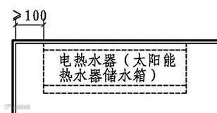 6、电热水器、太阳能热水器储水箱侧面距墙不应小于100mm(下图)。