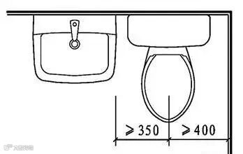 ①便器中心距侧墙不应小于400mm;中心距侧面洁具边缘不应小于350mm(下图)。