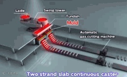连续铸造—是利用贯通的结晶器在一端连续地浇入液态金属,从另一端连续地拔出成型材料的铸造方法。