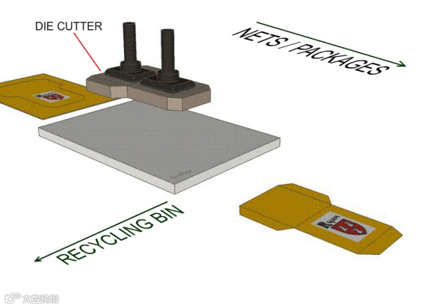 模切—即下料工艺,将前制程成型后的薄膜定位在冲切模公模上,合模去除多余的材料,保留产品3D外形,与模具型腔相匹配。