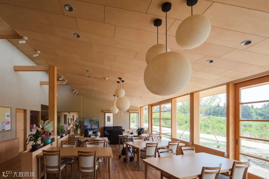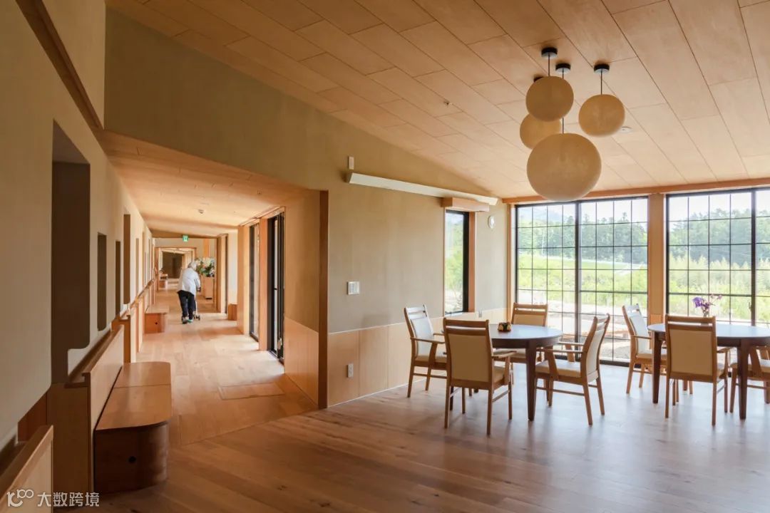 位于广岛庄原市的风之雅养老院,背靠苍山面临清渠,在碧云葱翠之中实现了真正的“远离尘世喧嚣”。这家养老院的独特之处在于建筑采用单元围合式布局,形成高效的护理单元。