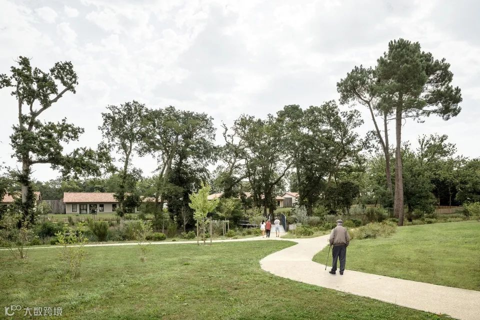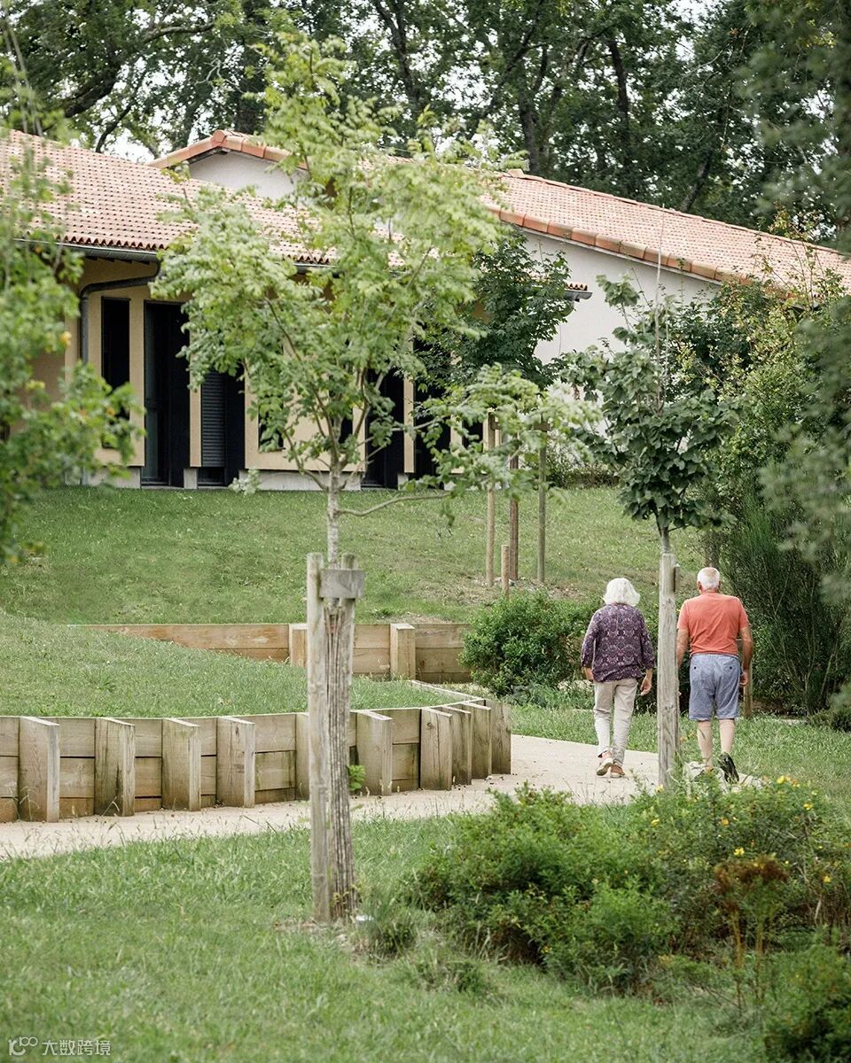 这是法国第一家为痴呆症患者设计的疗养院,建筑师将养老居民、医护人员、当地文化以及自然纳入考虑,因此从居民家属到科研工作者,每个人都会感觉这里的人们(包括痴呆症患者)生活在一个重视有尊严养老的环境中。