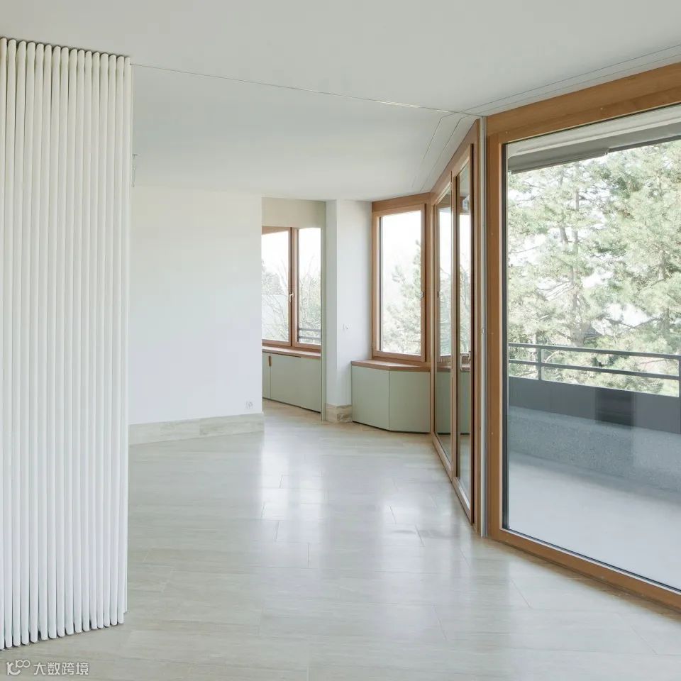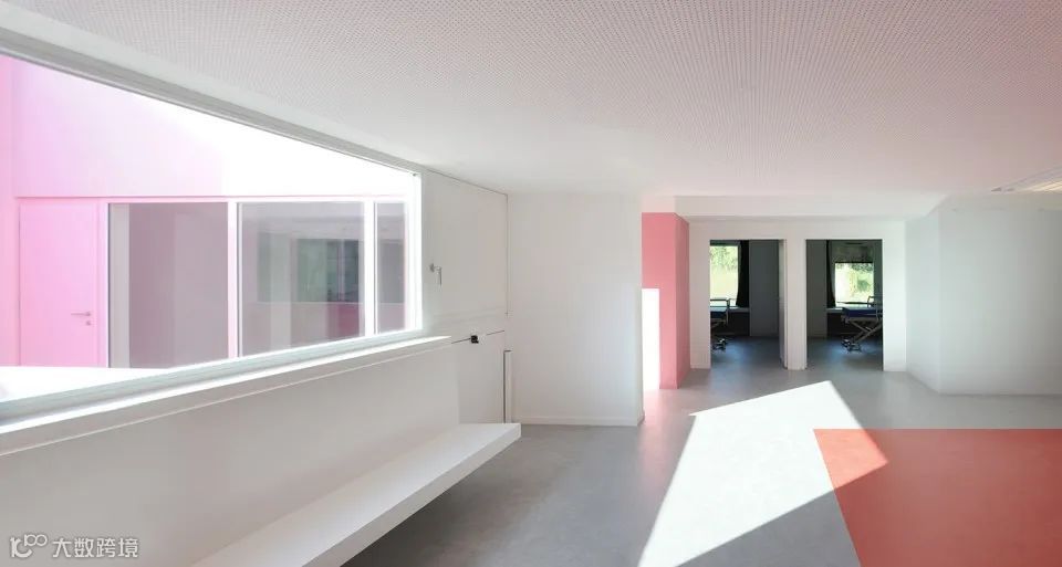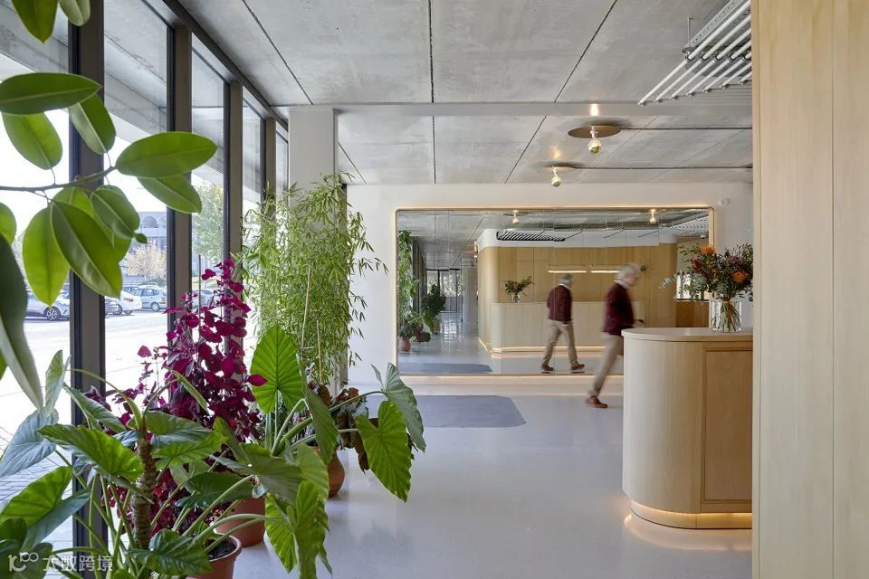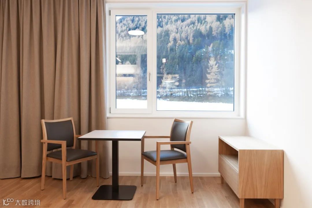 在整栋建筑贯彻了严格的色彩设计概念,无论是内部空间,还是外部立面,所有的色彩均采用了同系搭配的原则。空间面域的穿插、和谐色彩的组合,为疗养院的住客、访客和雇员们营造出一个舒适的空间氛围,原木材料的运用给空间更添了一份温馨的气息。