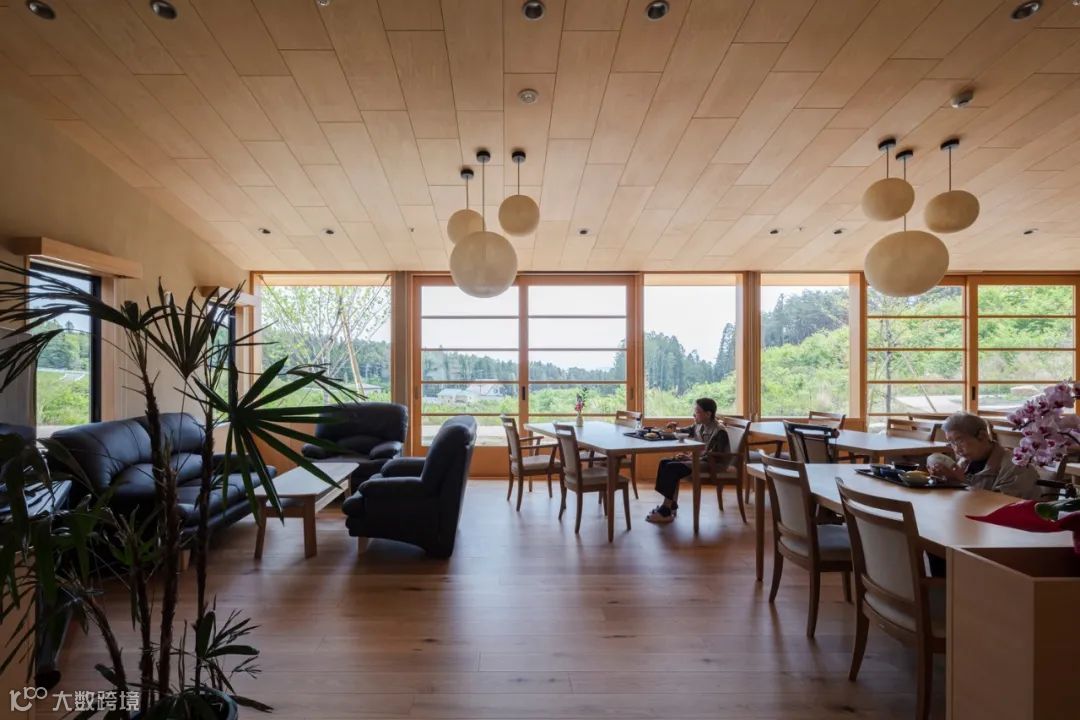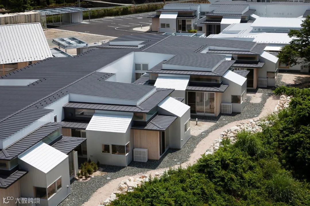 这是一个针对海啸发生后,提供老人服务的住宅,它是民间建筑师与大学合作的住宅重建项目,建筑低调且质朴,低矮的屋顶,大开窗引进充分的采光,为老人带来温暖。