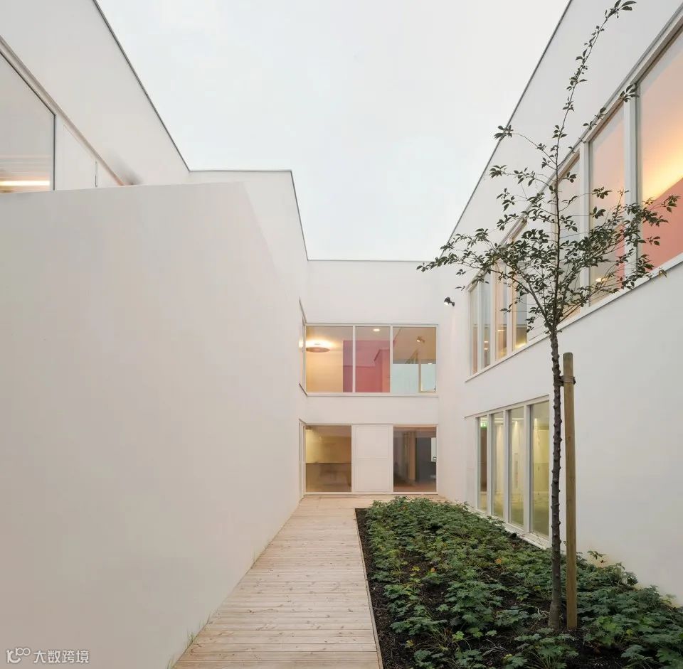 住宅单元亲近自然,特定地点的草、攀缘植物和芬芳的花朵不仅具有增进健康的作用,而且补充了休闲空间。Espaliers园艺与湖边的野性形成对比,它遮挡并分隔了户外空间,使这里给人一种私人花园的感觉。该建筑群共分为四个集群,每个集群容纳约30名居民,他们居住在配备所有必要设施和户外空间的小“家”之中。同时,餐厅、理发店和研究设施都位于主广场附近。