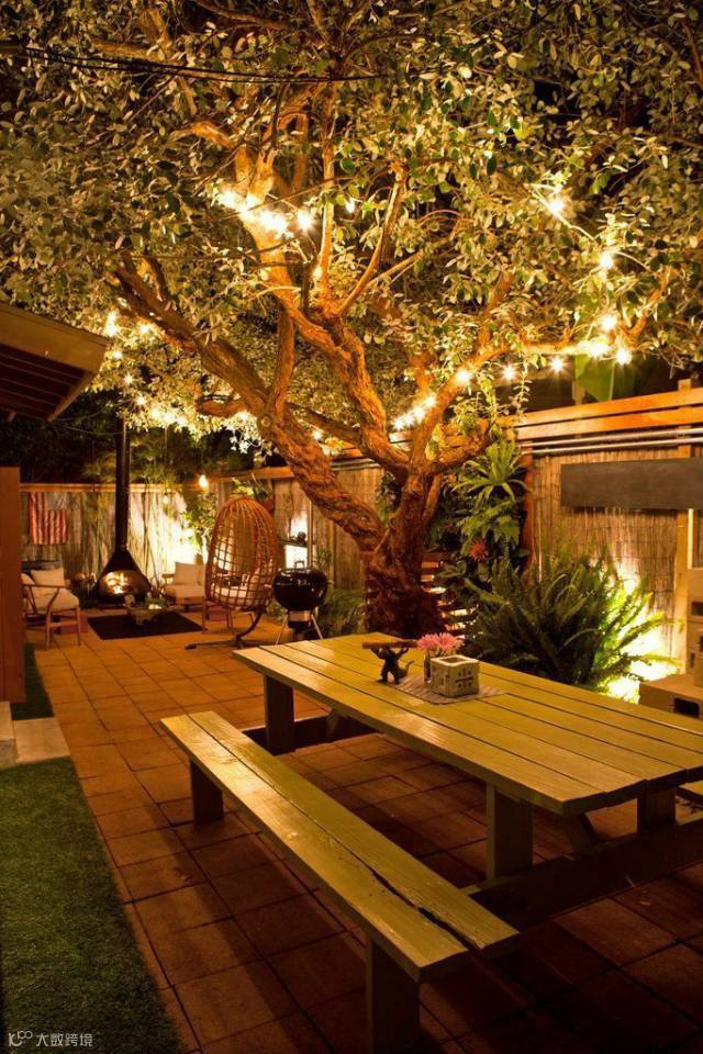 选择暖色调的光源,可以让整个院子显得格外的温馨。