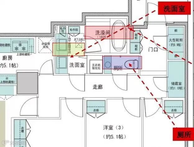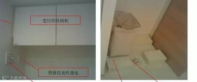 洗面室有的也会配备洗衣机专用空间,预留上下水;厕所部分,有的会设置迷你洗手盆。
