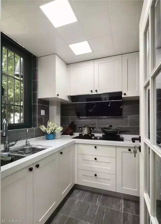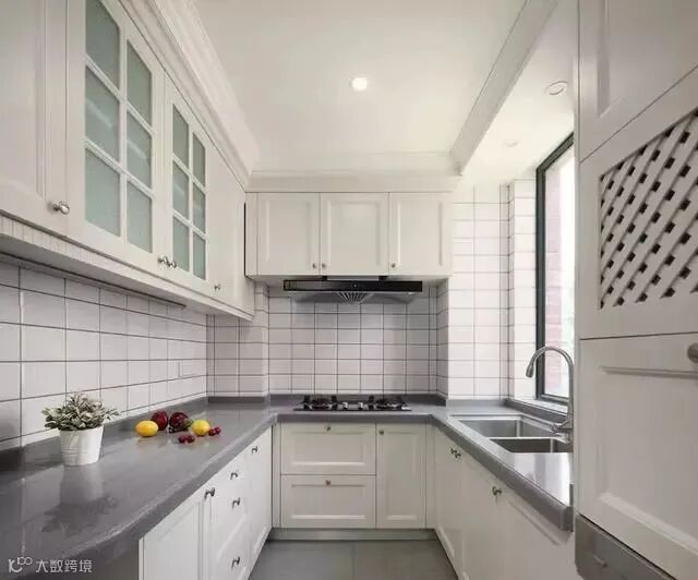 欧式或者田园风格还可以选取模压板,对厨房的保险度来说,白色永远不会过时,且能保持洁净、温馨的感觉。