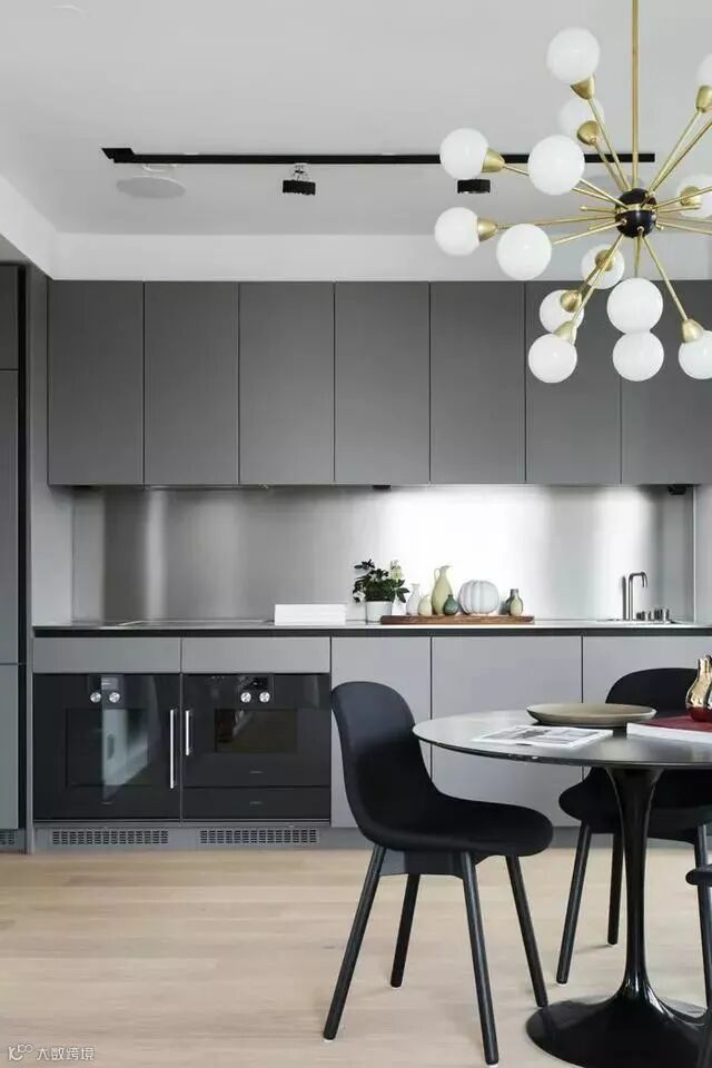 高级灰厨房打造的视觉效果,并非单一而枯燥,利用材质的搭配、灯光的效果、配色的点缀,一样将高级灰厨房打造地万种风情。