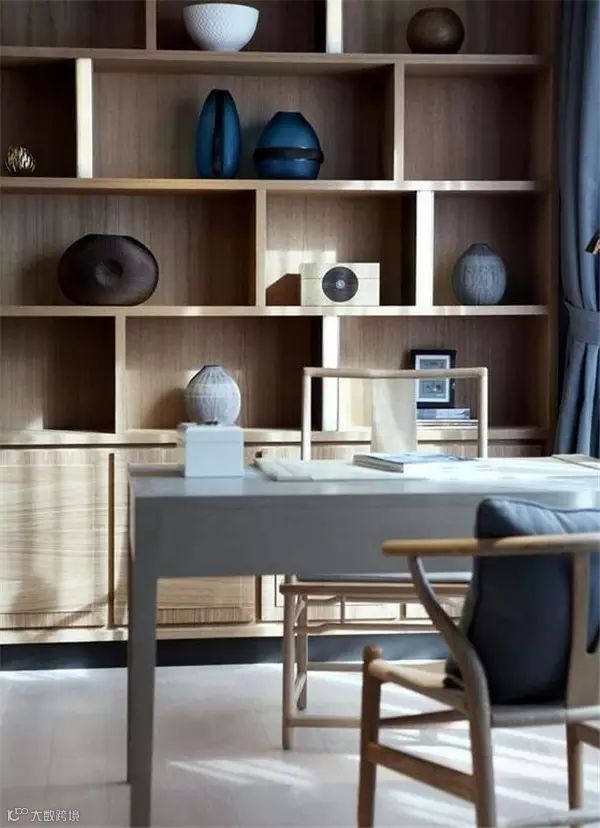 书架的西方现代设计,但是画面的其它都是满满的东方元素。