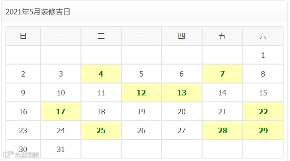 2021年5月装修开工吉日