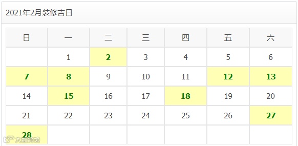2021年2月装修开工吉日