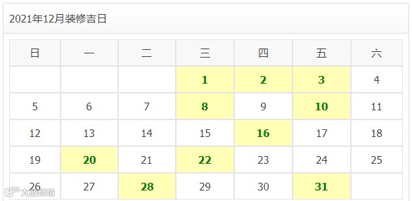 2021年12月装修开工吉日
