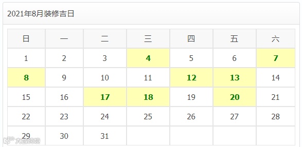 2021年8月装修开工吉日