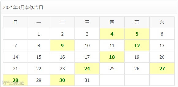 2021年3月装修开工吉日