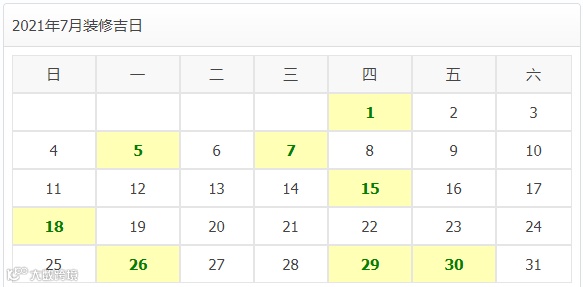 2021年7月装修开工吉日