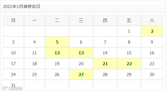 2021年1月装修开工吉日