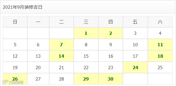 2021年9月装修开工吉日
